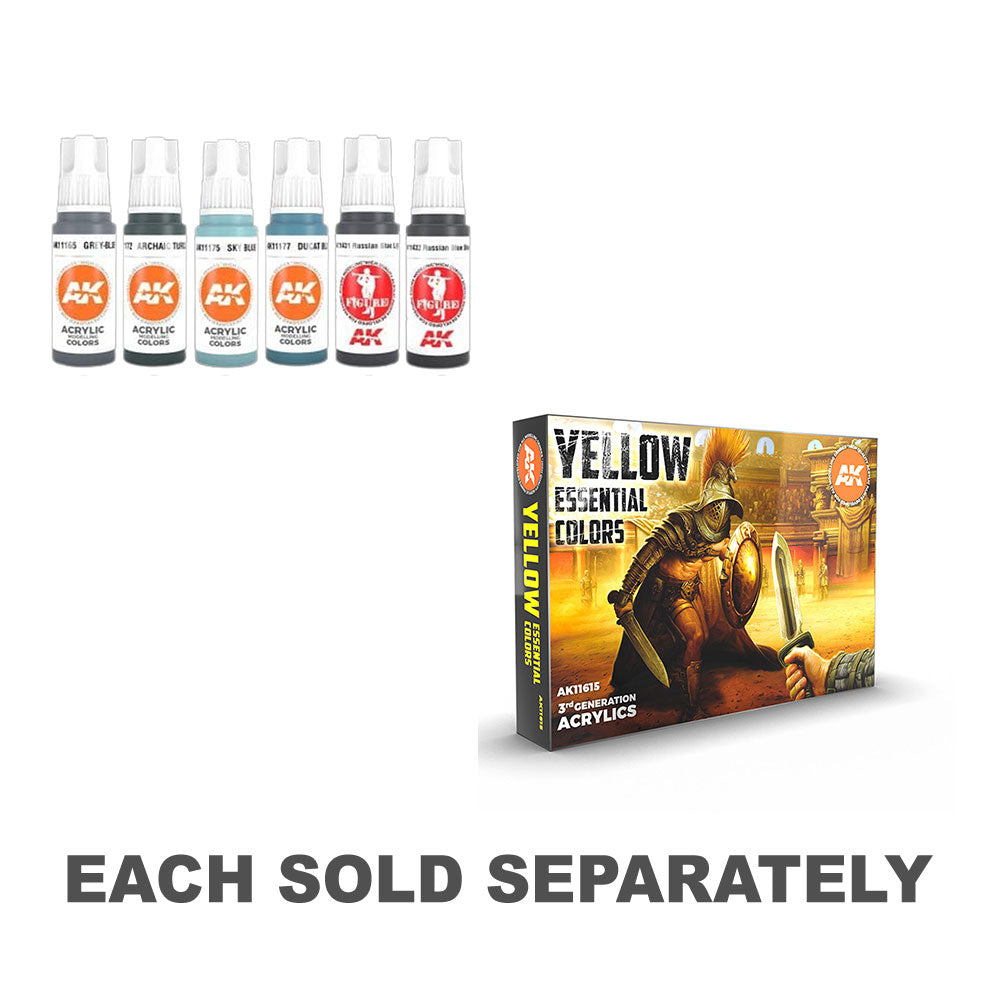 Dieses Set enthält 6 Acrylfarben, die für das Auftragen von blauen Oberflächen auf eine beliebige Zahl oder Zubehör unerlässlich sind. Diese Farben können leicht miteinander gemischt werden, sodass die problemlose Schaffung von glatten Übergängen zwischen Lichtern und Schatten erzeugt werden kann. Sie können mit Pinsel angewendet werden, um die hohe Abdeckung und Adhäsion der 3. Generation zu nutzen. Verdünnt kann so leicht wie lackbasierte Farben auf dem Basis von Lackbasis ausgestattet werden. Matte Finish Das Set enthält: AK11165 Grey-Blue AK11172 Archaisches türkiser AK11175 Sky Blue AK11177 Ducat Blue AK11431 Russische blaue Lichter AK11432 Russian Blue Base