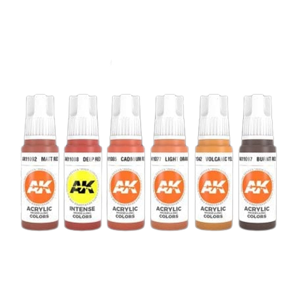 Dieses Set enthält 6 Acrylfarben, die für die Anwendung von roten Oberflächen auf eine beliebige Zahl oder Zubehör unerlässlich sind. Diese Farben können leicht miteinander gemischt werden, sodass die problemlose Schaffung von glatten Übergängen zwischen Lichtern und Schatten erzeugt werden kann. Sie können mit Pinsel angewendet werden, um die hohe Abdeckung und Adhäsion der 3. Generation zu nutzen. Verdünnt kann so leicht wie lackbasierte Farben auf dem Basis von Lackbasis ausgestattet werden. Mattes Finish Der Set enthält: AK11092 Matt Red AK11088 Tiefes rotes AK11085 Cadmium rot AK11077 Leicht orange AK11042 Vulkangelb AK11097 verbrannt rot gebrannt