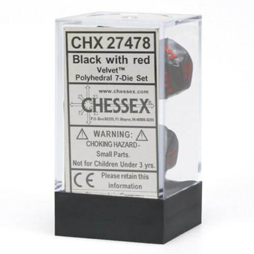 D7 Die Set Dice Velvet Polyeder (7 Würfel/Schwarz/Rot)