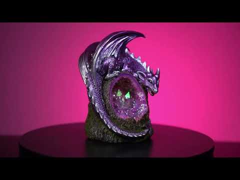 • Mit einem metallischen violetten Drachen, der sich um einen Baumstumpf windet