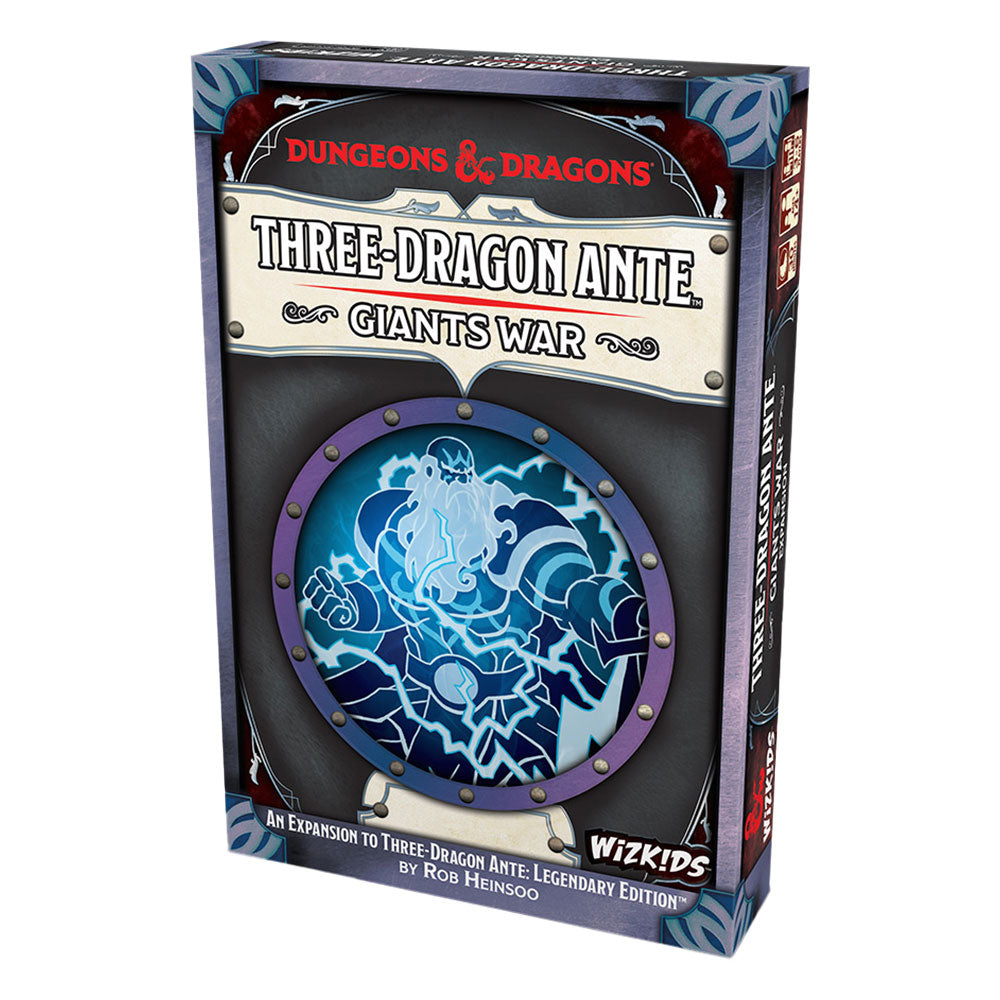 Vor langer Zeit kämpften Drachen und Riesen einen tausendjährigen Krieg, und die menschlichen Überlebenden erinnerten an die Schlachten, indem sie die Riesen in ihr hochriskantes Kartenspiel mit Glück und Geschick, THREE-DRAGON ANTE, einschlossen! Mit über 100 neuen Karten bietet THREE-DRAGON ANTE: Giants War eine völlig neue Möglichkeit, das klassische eigenständige Kartenspiel Dungeons & Dragons zu spielen! Sie mischen neue Giant-Anzüge ein und teilen die Einsätze in zwei Teile: die Dragon Stakes und die Giants Stakes. Die Spieler kämpfen dort um die Einsätze, wo ihre Flucht am stärksten ist, und eröffnen Ihnen so neue Wege zum Sieg! Es gibt auch eine neue Möglichkeit, legendäre Drachen und die neuen Riesengötter zu finden. Neue Kräfte ermöglichen es den Spielern, mächtige Karten aus dem legendären Deck zu ziehen!