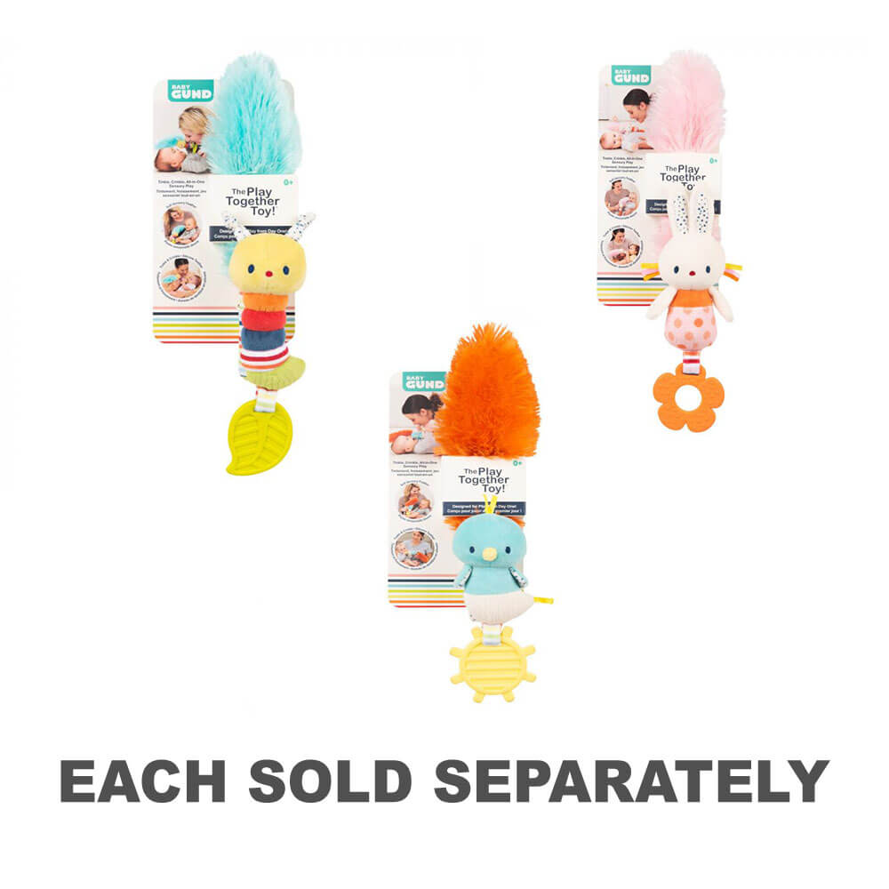 Dieses erste Spielzeug für Babys wird auf einer bedruckten Begleitkarte präsentiert und verfügt über eine weiche Feder, eine Knisterfunktion, eine Rassel, einen sicheren Beißring aus Silikon und ein Plüschtier in einem! Entworfen zum Trösten, Beruhigen und Streicheln und mit GUNDs charakteristischer Weichheit, unterhalten Sie Ihr Baby mit einem Kitzelspielzeug aus der farbenfrohen Tinkle Crinkle-Kollektion.