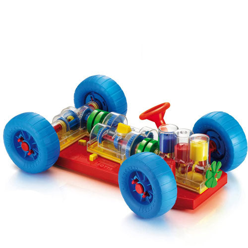 - Drei große durchsichtige Teile passen zusammen mit den Rädern und dem Fahrgestell, um ein Fahrzeug zu schaffen, das alle wichtigen mechanischen Bewegungen zeigt, die ein Auto zum Laufen bringen