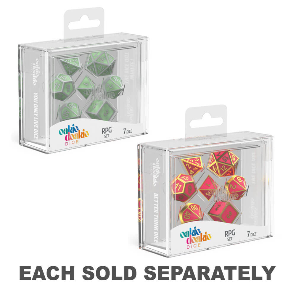 - Die Rollenspiel-Spielsets bestehen aus 7 verschiedenen Würfel: D6, D4, 2x D10 (Schritte von 1 und Schritten von 10), D8, D20 und D12.