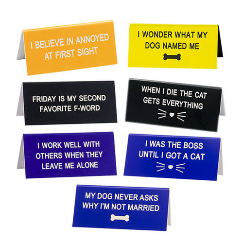Brechen Sie die Monotonie der Arbeit auf und bringen Sie ein paar LOLs ins Büro mit diesem gelben Schreibtischschild von SAY WHAT?. Die Bildunterschrift lautet: „Ich glaube an Ärger auf den ersten Blick“. Das Produkt misst 9 cm x 4 cm.