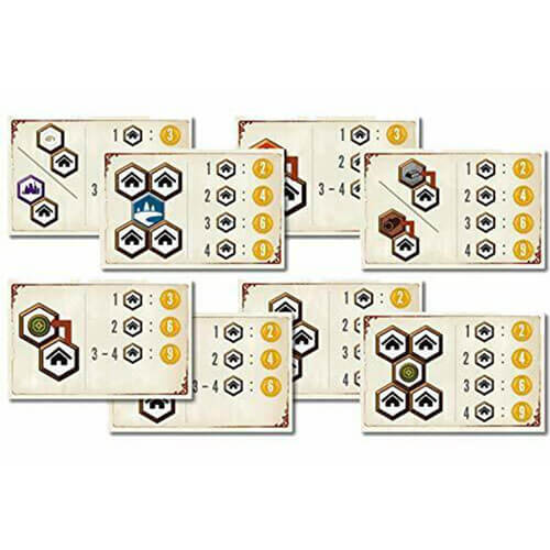 - 4 doppelseitige Kacheln (7 Sechsecke pro Kachel)