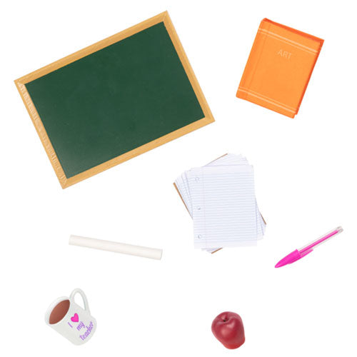 Die Klasse ist in der Sitzung mit Taylor, einer 46 -cm -Puppe für Schullehrer. Sie hat dunkelbraune Augen, die sich öffnen und schließen, und ihr langes braunes Haar macht Spaß, bevor sie ihren Tag an der Awesome Academy beginnt! Bringen Sie Ihre Lieblingsfächer bei, indem Sie mit der echten Kreide auf die Tafel schreiben, und drehen Sie Taylors Arme und Beine, um allen ihren Schülern lustige Aufgaben zu verteilen? Sie hält ihren Stapel Papiere ordentlich in ihrem trendigen Rucksack! Sie kommt auch mit realistischen Schulzubehör an, die ein Kunstschütze, einen Stift mit einer abnehmbaren Mütze, einen leckeren roten Apfel und eine Kaffeetasse enthalten, die ihr von ihrer besten Freundin gegeben wurde! Taylors Ensemble verfügt über ein lässiges Oberteil mit einer roten Weste, einem Rock im Denim-Stil, kniehohen Socken und bequemen Schuhen mit dekorativen Bögen