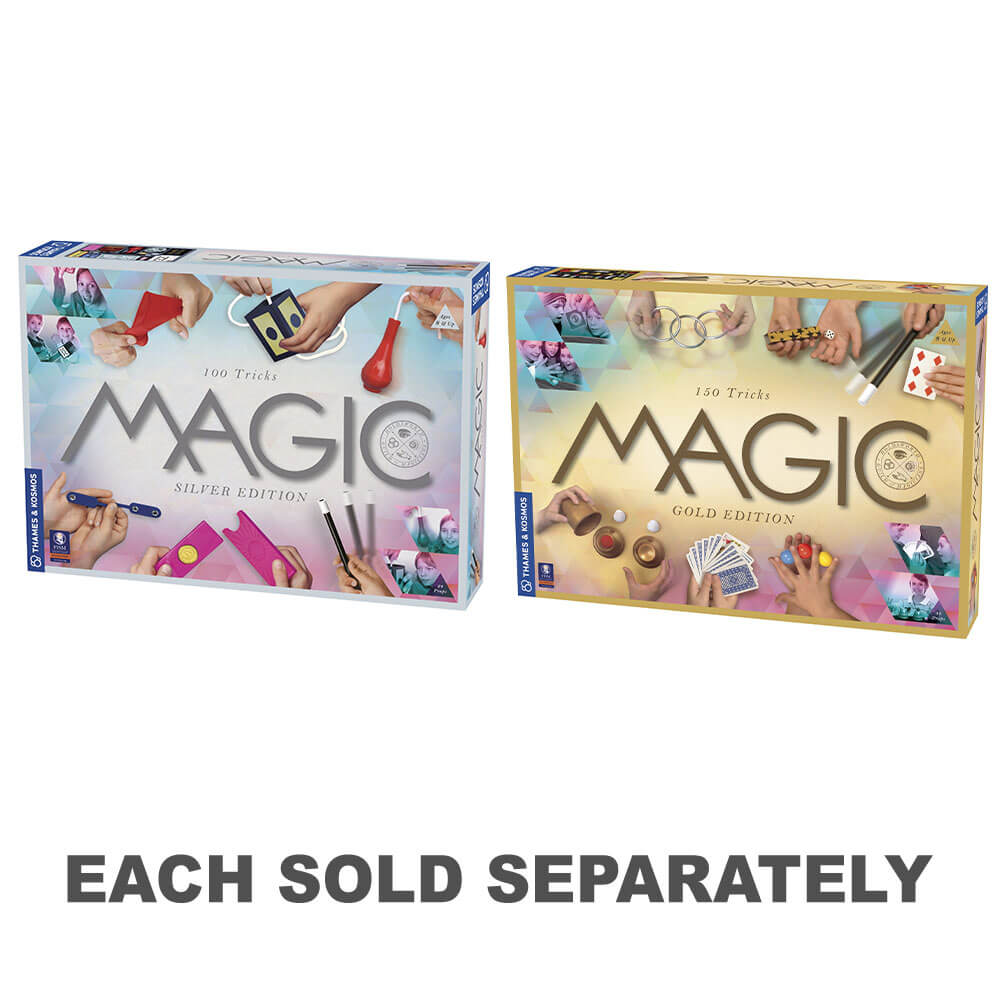 Schnapp dir deinen Zauberstab! Mit hochwertigen Zauber-Requisiten und einfachen, bebilderten Anleitungen können die 100 Zaubertricks in der Magic Silver Edition ganz einfach erlernt, geübt und gemeistert werden – um das Publikum zu verblüffen und zu verblüffen! Punkte erscheinen und verschwinden bei Paddeltricks. Lass Spielkarten kommen und gehen und ändere die Plätze. Bei Tricks mit Geld verliert die Währung an Wert, das Geld verdoppelt seinen Wert und Münzen verschwinden aus einer Münzkassette und tauchen wieder auf. Münzen verschwinden durch Taschentücher, verschwinden in Luft und bleiben auf magische Weise an Ort und Stelle, wenn sie es nicht sollten! Papiergeld verschwindet und Milch erscheint aus dem Nichts in Tricks mit Tuben. Bei einer Reihe von Tricks handelt es sich um Knoten und Seile: Knoten in Seilen lösen sich, springen von Seil zu Seil und verschwinden. Ein Seil geht durch feste Gegenstände. Eine Flasche schwebt in der Luft. Ein starrer Zauberstab wird flexibel. Ein Zauberstab wächst und schrumpft, durchdringt Objekte und kommt aus einer leeren Tasche heraus. Der Zauberstab dreht sich und schwebt. Unsichtbare Kräfte bewegen den Zauberstab. Der Zauberstab zeigt die Zeit an.Ma