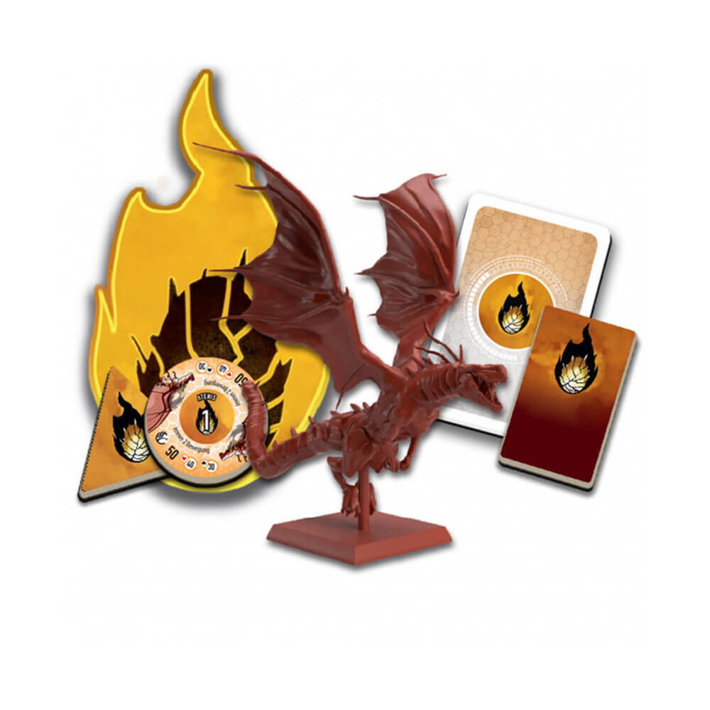 1 Fraktionsblatt, 6 einzigartige 3D-Feuergeborenen-Miniaturen, 1 Initiative-Token, 4 Kampfkarten, 12 Wachstums-Token, 1 Missionskarte, 1 3D-Heimatzonenplättchen (exklusiv für KS), 20 Fraktionsmarker.