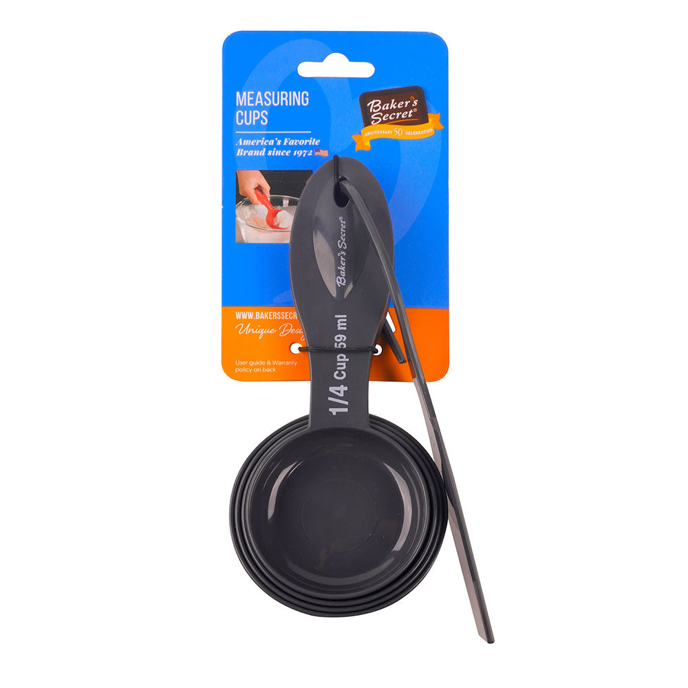 Baker's Secret Plastic Measuring Cups has clear volume marking great for wet and dry ingredients. Sized accurately for reliability. Plus, they nest together for easy storage, BPA free.