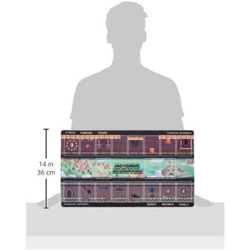 This gorgeous full-colour foam playmat is inspired by the overworlds and dungeons of classic video games and is optimised for two player games. it comes packed in a sturdy 15 inch plastic tube with hang-tabbed stopper for easy display.