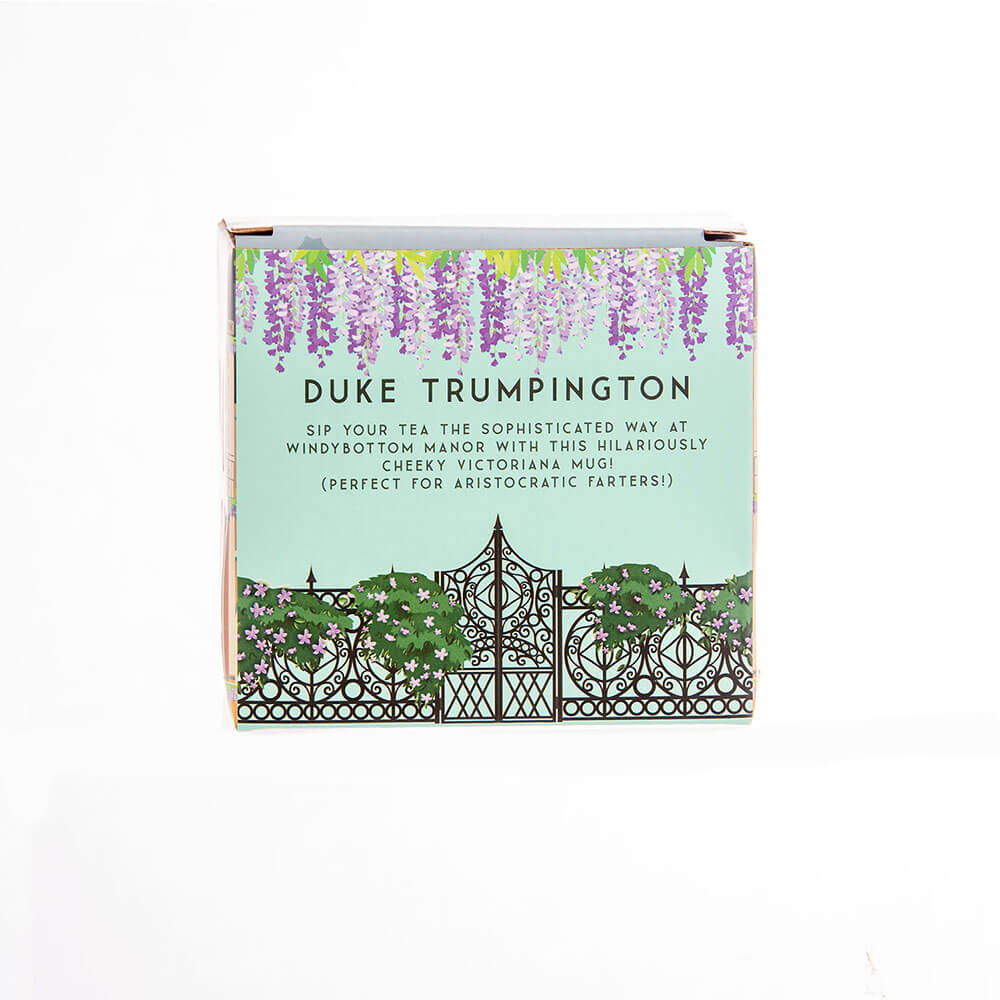 • SORRY SIR…WHAT'S THAT SMELL? - This hilarious pastel blue 'Duke Trumpington' Victoriana Mug features the hilarious text, 'Duke Trumpington of Windybottom Manor'!
