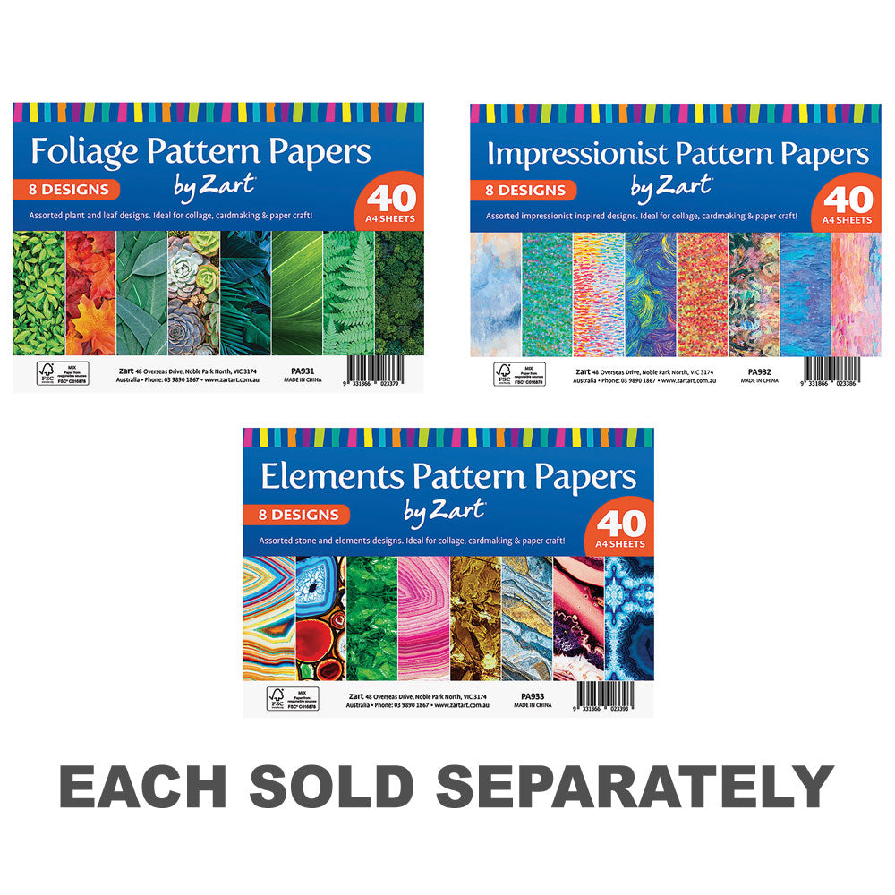 • Total pack contains 40 sheets (5 copies of each of the 8 designs)