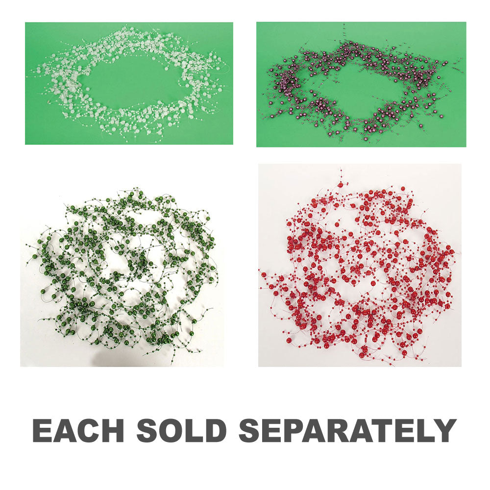 - Frosted white pearl garland offering a delicate and ethereal aesthetic, bringing a touch of winter elegance