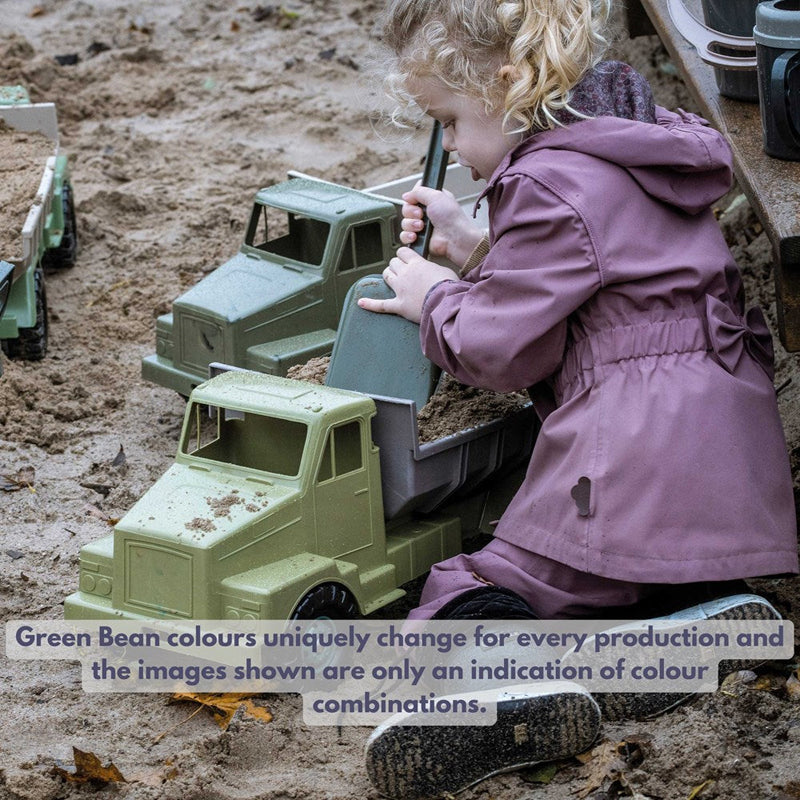 Green Bean colours uniquely change for every production and the images shown are only an indication of colour combinations.Unique item - you get an entirely unique Dantoy dump truck from the Green Bean line. The product is made of plastic waste from production, and it is Nordic Swan Ecolabelled. The recycling process generates wonderful colour nuances and random colour combinations, which means that no two lorries are the same. The lorry comes with a swingtag of recycled cardboard and is a sure hit both outdoors and in the child's room. Green Bean products are toys produced in limited quantities since they are made from the waste we have in stock, making this line of toys even more unique. The recycling process generates wonderful colour nuances and random colour combinations. Can be used from age 2 and is dishwasher safe. - Made in Denmark. - Recycled plastic. - Contains no toxins. - Dishwasher safe. - Nordic Swan Ecolabel - benefiting health and the environment.