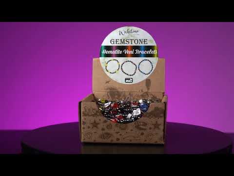 - Features hematite beads, silver spacer beads and glass beads with coloured string