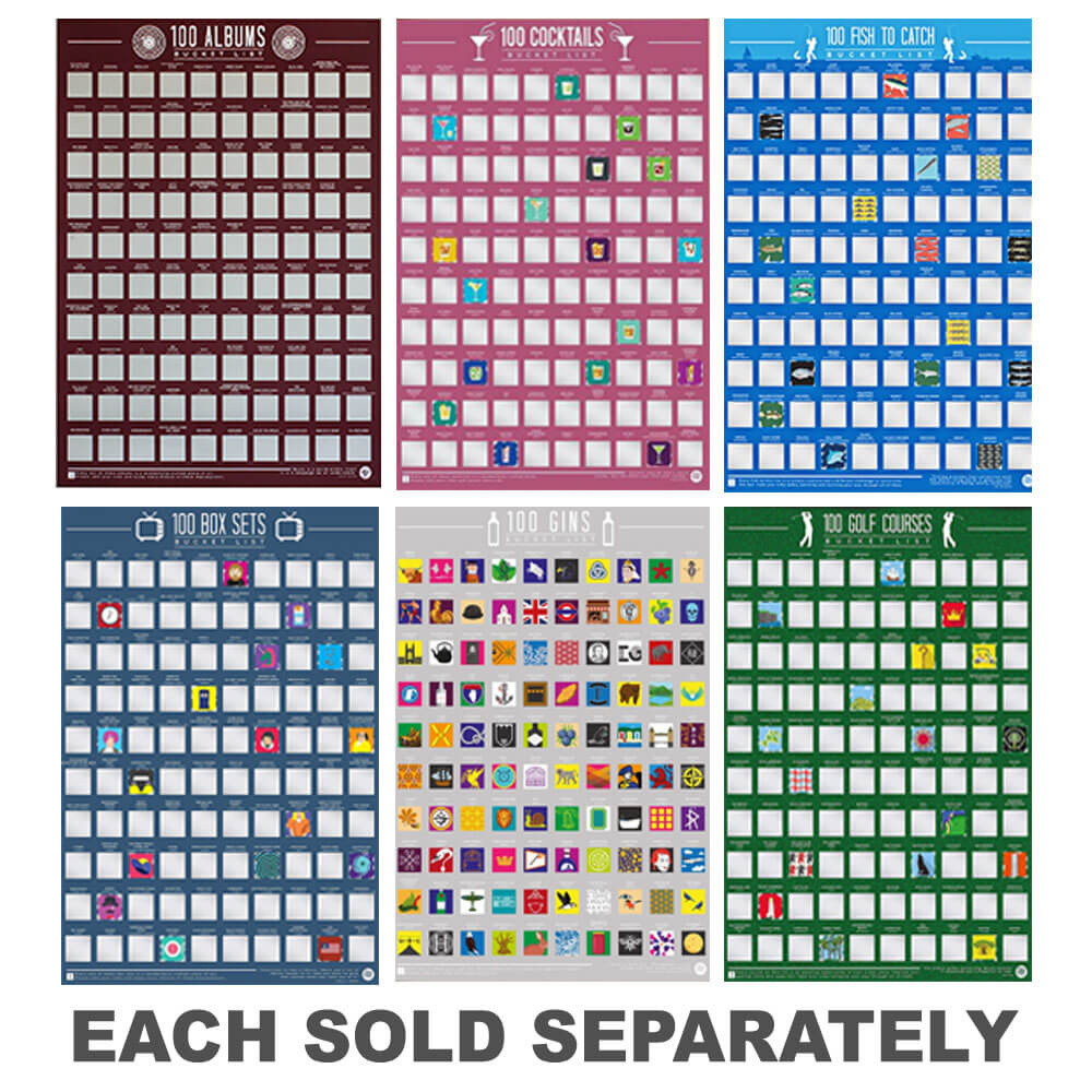 Our scratch off bucket list posters with various themes compiles 100 of... anything! These beautiful posters allows you to scratch as you go along to reveal whats hiding under the next box.