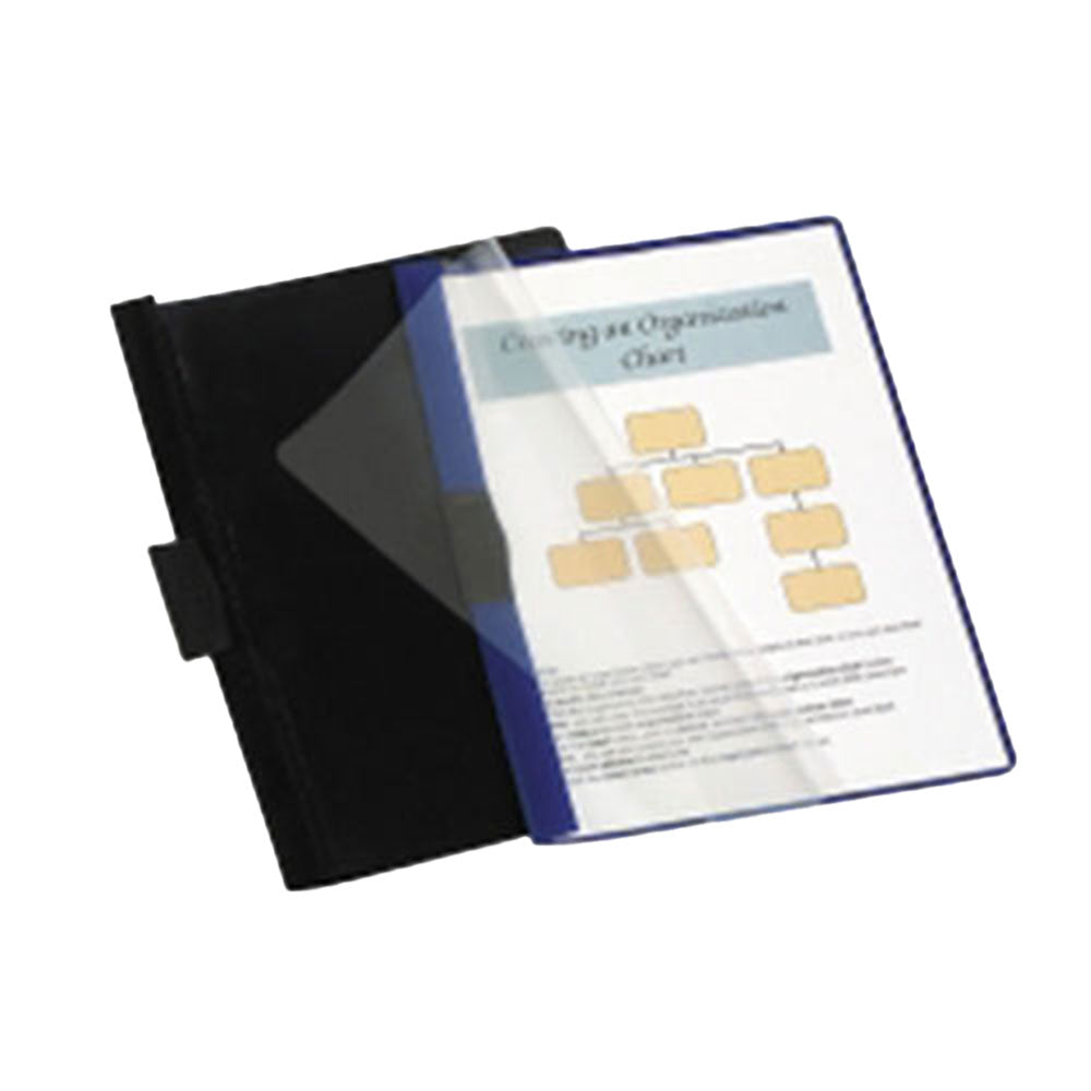 • Clear front cover with a clip system on the spine to secure unpunched paper.