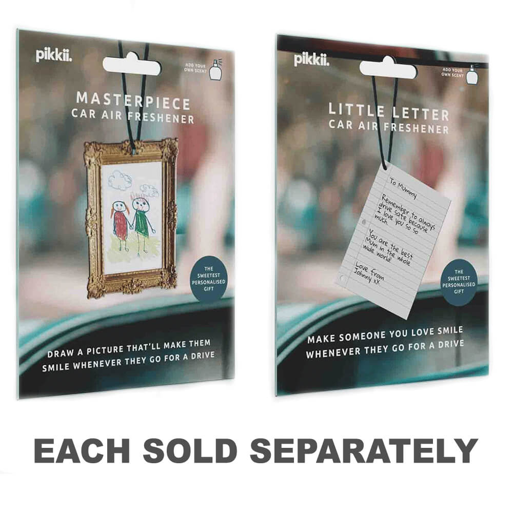 Draw a picture that will make them smile every time they go for a drive. Made from cotton paper, and free from plastic and all those harsh chemicals usually found in air fresheners, simply add your own scent so it smells like you (perfume, cologne, essential oil, etc) then use your choice of pens, pencils or markers to doodle something meaningful on the blank canvas.