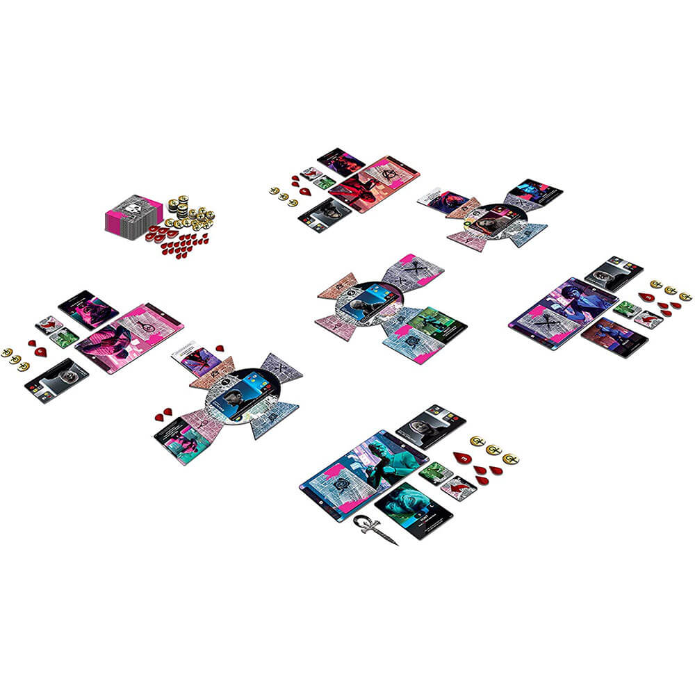 Vendetta is a game of area control, bluff and treachery in which you scheme and fight for influence and power as immortal vampires! Play cards and blood to earn the control of influential humans, feed on them, and make them your servants; your goal is to gain the most influence over three ages. You draft cards at the beginning of the game, then gradually draw an increasing number of cards from your deck at the beginning of each age (i.e., all the cards you had during the previous age, plus new ones).