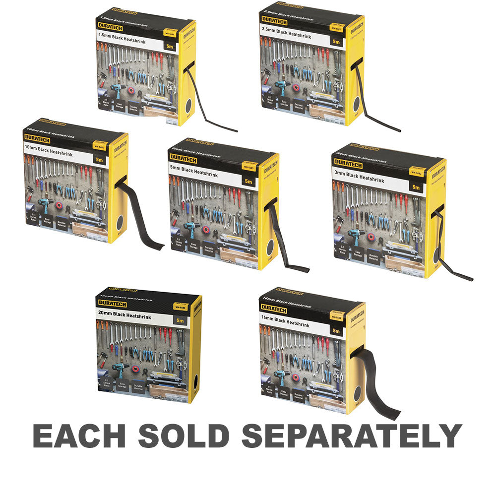 Myydään 5 metrin laatikkona, joka voidaan siististi pinota ja järjestää työpajassa tai Tradesmans -pakettiautossa. Kutistu lämpöpuistolla, hiustenkuivaajalla tai kaasupolttimella.