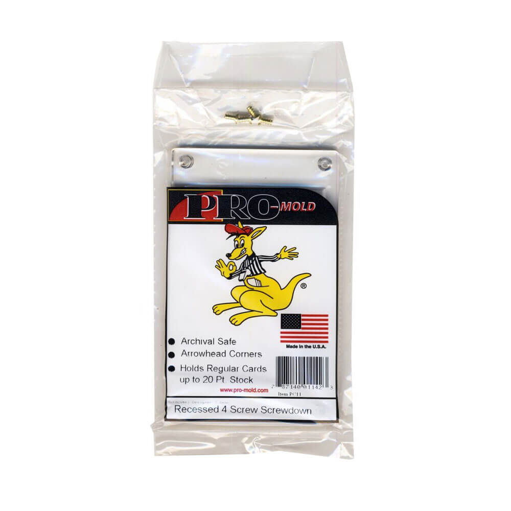 Pro-Mold 4 -krew-pidike on suunniteltu näyttämään houkuttelevasti yksi kortti. Toisin kuin muut 4 ruuviruuvetta, tässä kortin yläpuolella olevassa kannessa on upotettu alue, joka antaa kortille kolmiulotteisen ilmeen. Tässä pidikkeessä on lukittujen ruuvireitit, jotka tekevät siitä pinottavan.