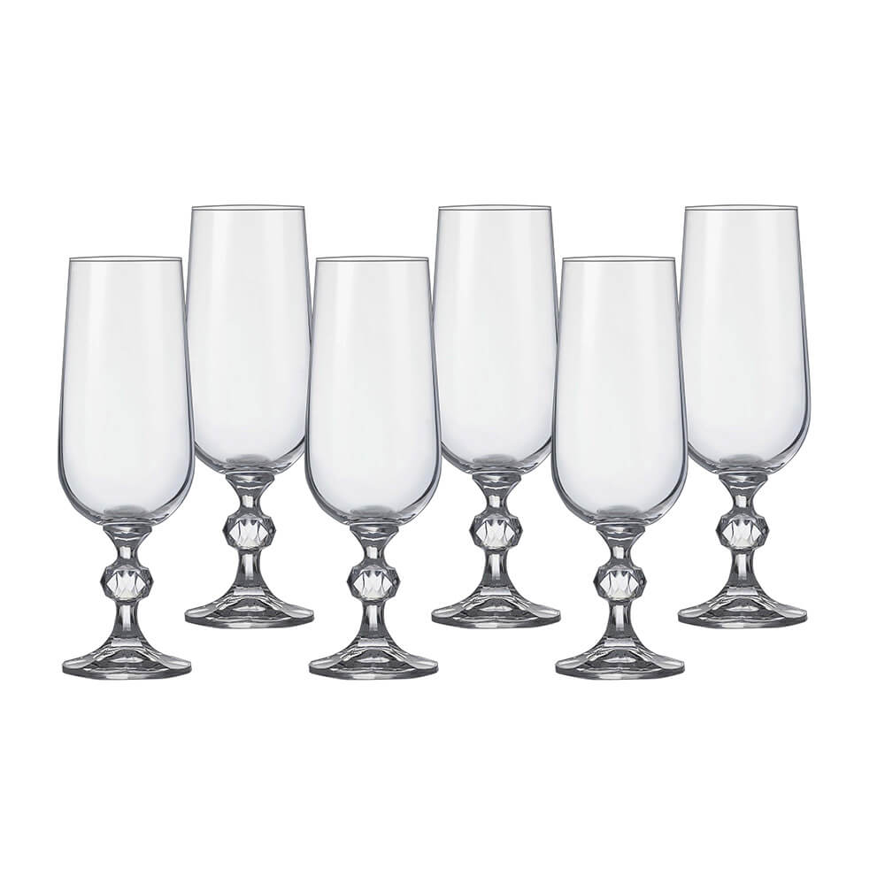 Claudia Champagne Glassissa on sileä korkea kuppi ja tyylikäs juhlallinen muotoilu, jota parantaa "timantti", joka on leikattu varsille. Se on yksinkertaisesti tyylikäs nainen, joka sopii poikkeuksellisiin tilanteisiin, jotka viedään korkeammalle tasolle. Lasi on valmistettu lyijytöntä kristallia. Astianpesukoneen kestävä. Sarja voidaan yhdistää muihin Claudia -kokoelman tuotteisiin.