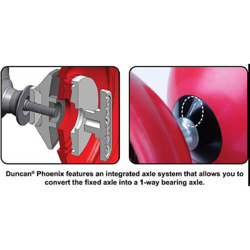 Diabolo -pelaajien ei enää tarvitse valita kiinteän akselin ja laakerin Diabolon välillä! Duncan tarjoaa nyt molemmat yhdessä diabolossa Phoenixin kanssa! Käsin kiristämällä nuppeja pelaaja voi nopeasti vaihtaa akselit edestakaisin pelin variaatioita varten ja minkä tahansa taitotason saavuttamiseksi. Phoenix, joka sisältää nopean rullakertomustekniikan alhaisen merkkijonon kitkan ja pitkien spin -aikojen suhteen, on ainoa diabolo sekä aloittelijoille että pro -pelaajille!