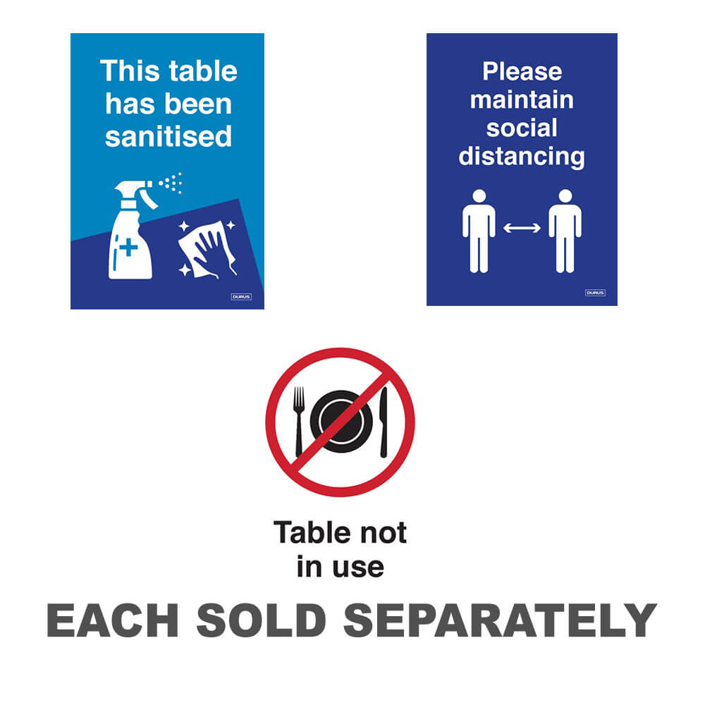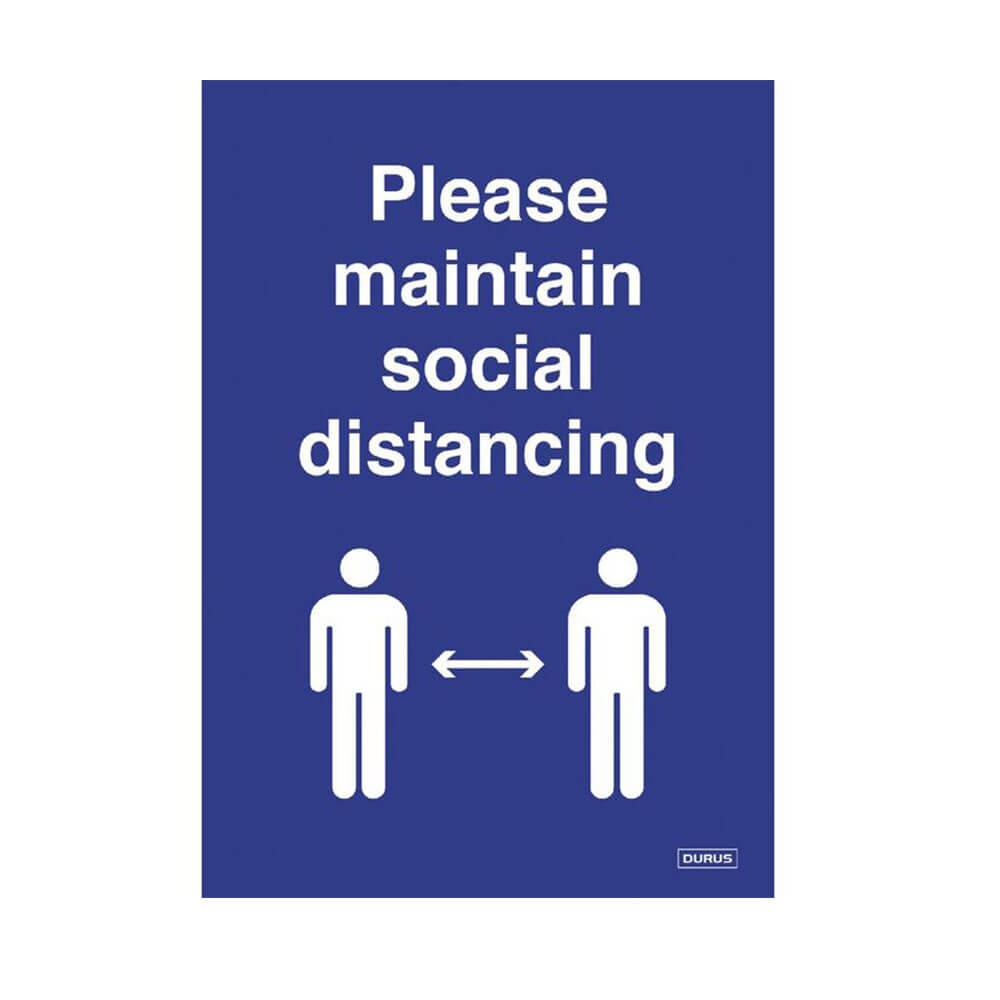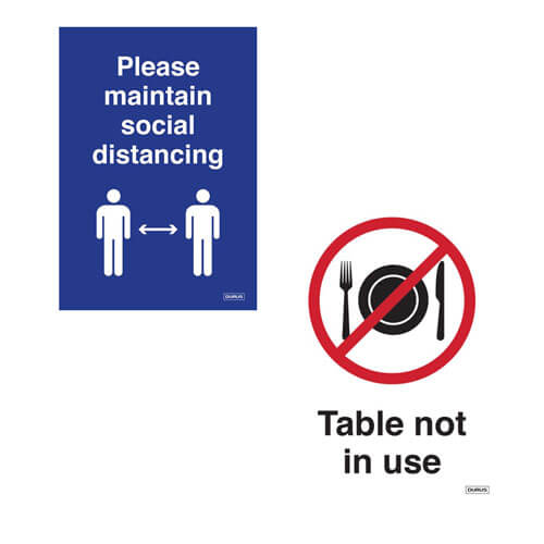 Tämä Durus -telttamerkki on ihanteellinen käyttämään yrityksessäsi kommunikoidaksesi asiakkaille. Siinä sanotaan "ylläpitä sosiaalista etäisyyttä" ja on itsenäinen, jolloin voit sijoittaa sen puhtaan pöydälle. Se on valmistettu korkealaatuisesta polypropeenista ja viesti on painettu molemmille puolille.
