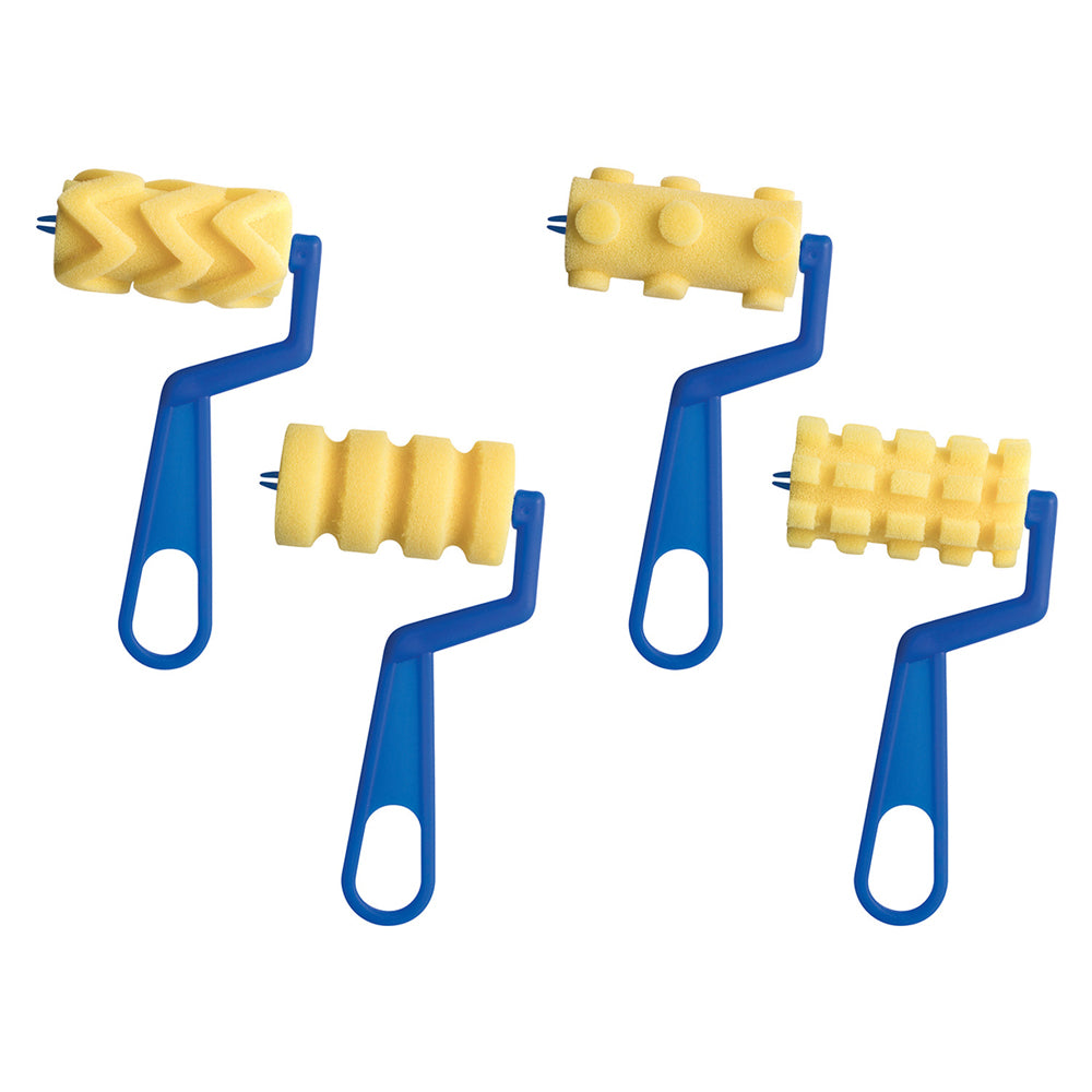 • Set of 4 foam paint rollers with assorted patterns: Enhance your painting projects with a variety of textures and designs. Each roller in the set features a different pattern, allowing you to create a wide range of artistic effects.