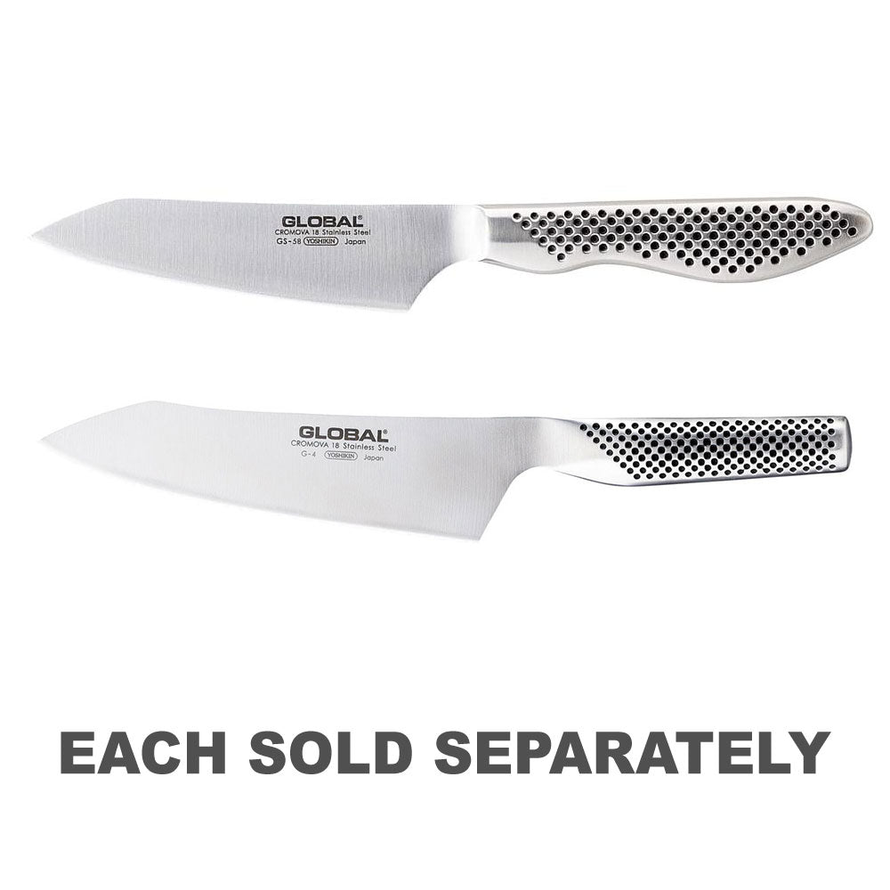 Hienoin ruostumattomasta teräksestä valmistettu materiaali. Terät hyödyntävät Cromova 18 ruostumattomasta teräksestä, jääkarkaistu ja kovettuneita rockwellille, jolla on partakoneen terävä reuna pidempään kuin mikään muu teräs ja vastustaa ruostetta, tahroja ja korroosiota. Muita globaalien veitsien ainutlaatuisia piirteitä ovat niiden sileät muodot ja saumattomat, kaikki ruostumattomasta teräksestä valmistetut rakenteet, jotka eliminoivat ruoka- ja likalaivot, jotka tarjoavat lopullisen turvallisuuden ja hygienian.