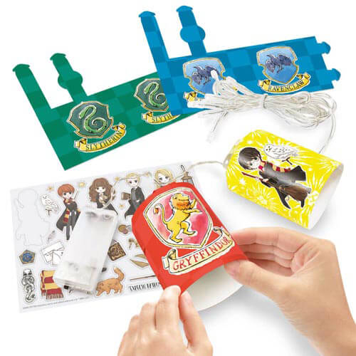 Harry Potter -valmistaja Kitz on hauska luoda! Luo omat Tylypahkaiset myöhemmin. Takia on 10 L.E.D -lyhtyvaloa, joihin kuuluvat talot Gryffindor, Slytherin, Ravenclaw ja Hufflepuff. Mukauta lyhtyjä tarroilla. Pakkaus sisältää yli 30 tarraa. Vaatii 2 x AA -paristoa (ei sisälly). Soveltuu 6 -vuotiaille.