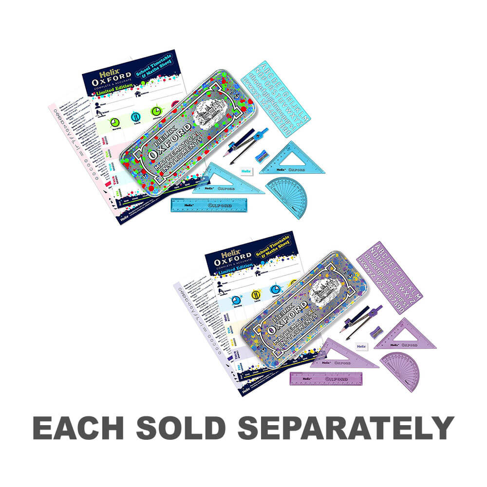 Helix Oxford Blue 9 -teoksen matematiikan sarja on kätevä tapa varastoida matematiikan välttämättömyyttäsi kouluun. Sen mukana tulee valikoima matematiikan työkaluja luokan loppuun saattamiseksi sekä joitain paperitavaroiden välttämättömyyttä ja kestävän tinan kaiken varastoimiseksi.