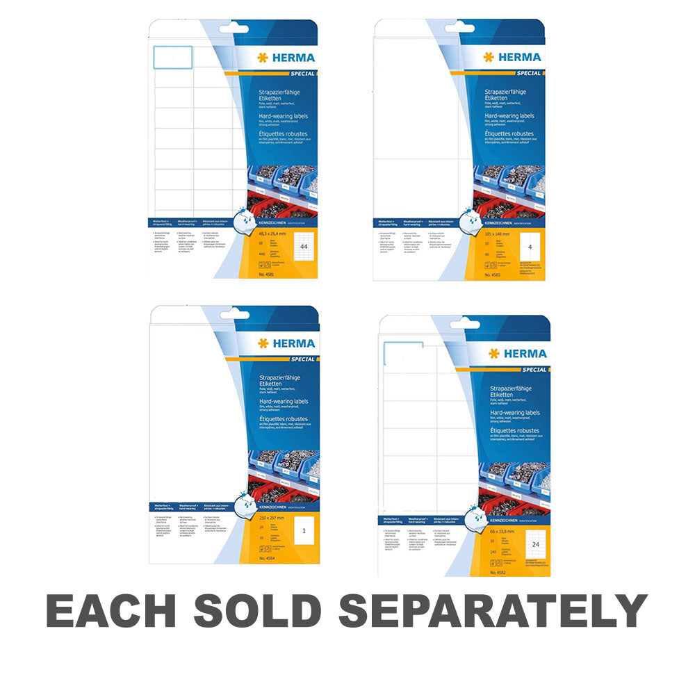 • Label items and documents with these A4-sized hard-wearing white labels.