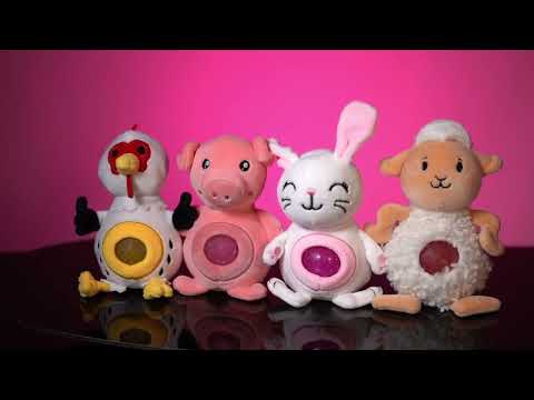 Pehmeä ja sumea muhkea, joka on täynnä värikkäitä hyytelöitä, jotka poistuvat vatsastaan! Squish em ja tunne ongelmasi sulaa. Kohde voi vaihdella 4 ihastuttavan mallin välillä: kani, sika, kana ja lampaat.