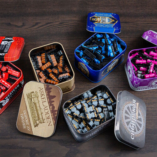 - Hieno yksityiskohtaiset muoviset junat ja asemat, varastoituna ainutlaatuisiin tinarasiaan