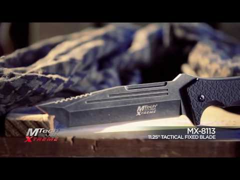 M-Tech USA: n luukkuun nylonvaippalla (musta) on 280 mm: n kokonaispituus. Se esiintyy nylonvaipan, ruostumattomasta teräksestä valmistettua terää, satiinierää ja kumiptiokahvaa