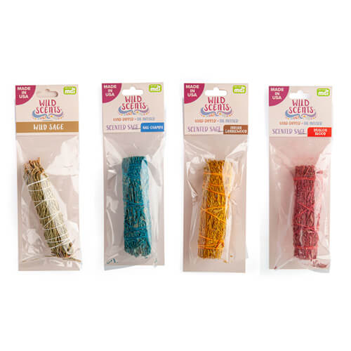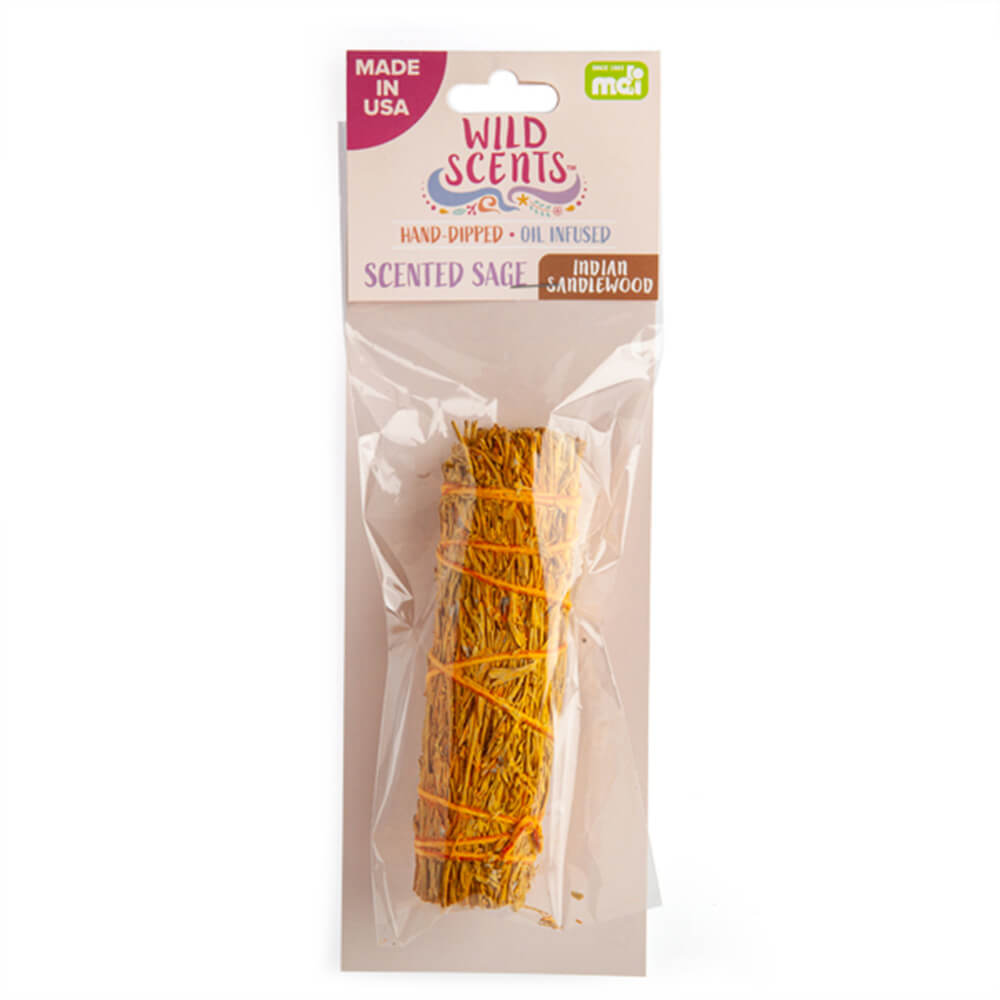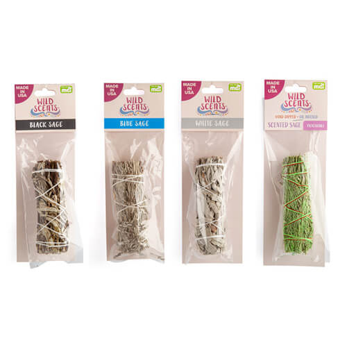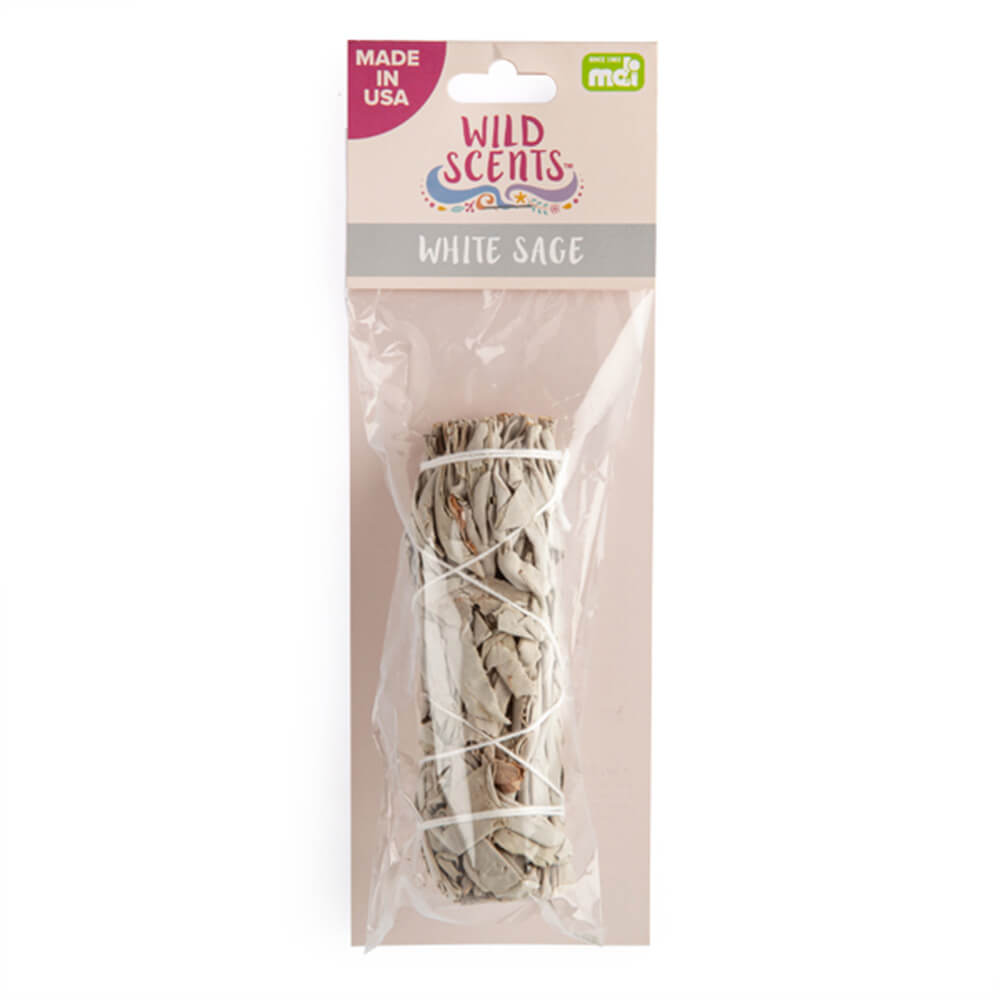 Käsin sidottu salviamahtokeppi, joka on valmistettu valkoisista salvialehdistä ja varrista. Puhdista ja puhdista tila sen makealla aromaattisella tuoksulla. Valmistettu USA: ssa.