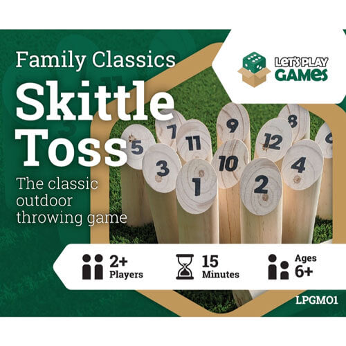 Suosittu harrastus, pelaa Skittle heittää melkein millä tahansa pinnalla, mukaan lukien ruoho ja hiekka! Pelissä on kevyitä puisia kappaleita, jotka kaiken ikäiset ja vahvuudet voivat helposti poimia ja pelata.