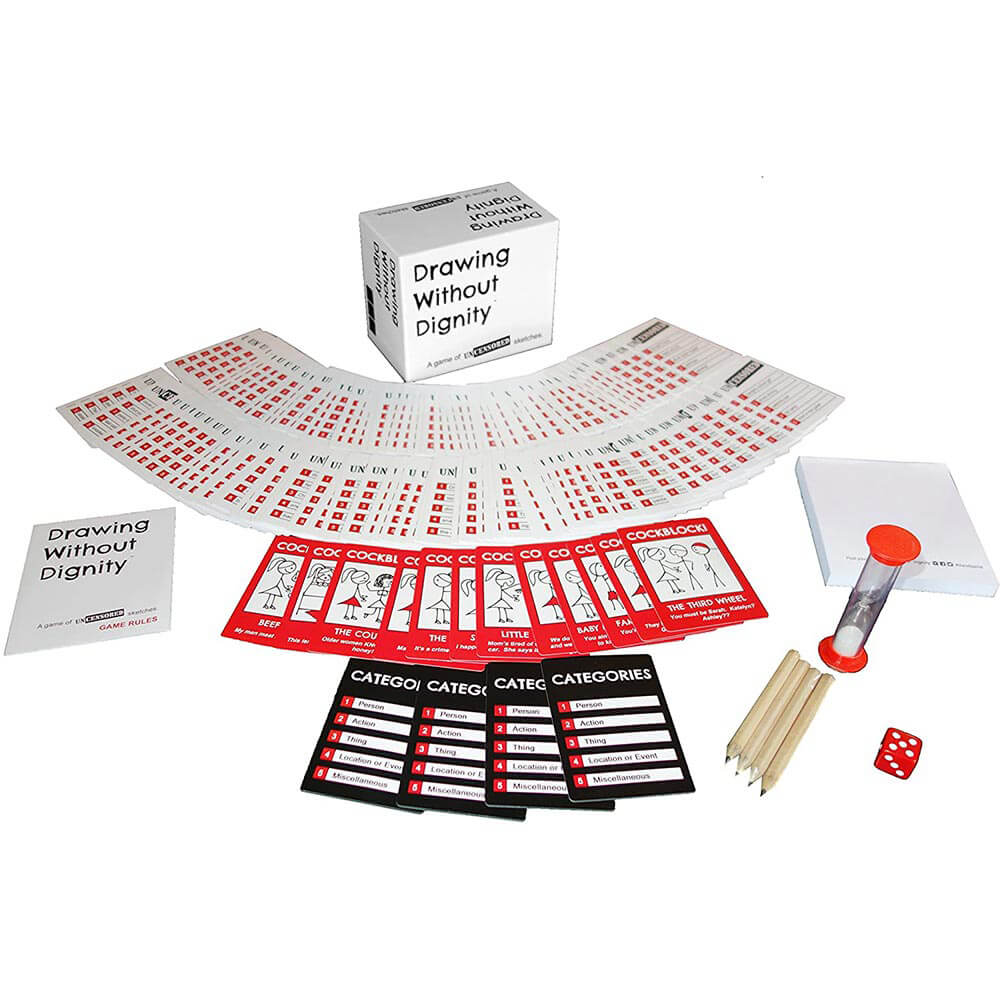- Piirustus ilman arvokkuutta on täydellinen juhlapeli peliyöhön tai lahjaksi. Juhla -aika ilman lapsia! Vakavasti kuitenkin tämä ei ole sydämen heikko ja se on vain aikuisille.