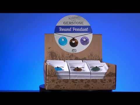 Laadukas nahkajohtokaulakoru, jossa on pyöreä jalokivi riipus. Kohde voi vaihdella 6 jalokiven välillä: fluoriitti, hematiitti, ulvonta, ametisti, ruusukvartsi, kultatiikeri silmä.