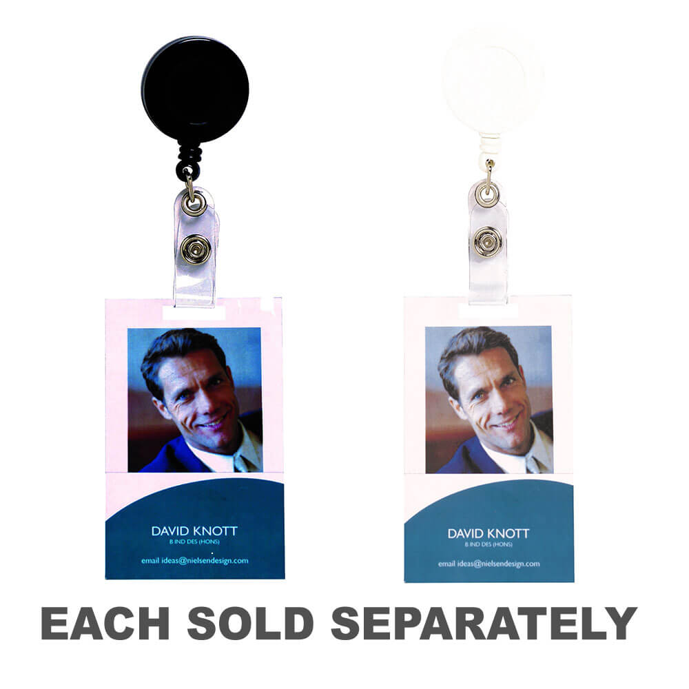 Sisäänvedettävät henkilökortin pidikkeet kiinnittävät vaatteet pitämään kortit turvassa ja käsillä aina