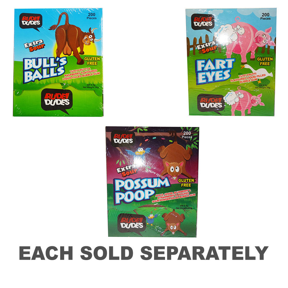 Valmistaudu räjähtävästi hapankokemukseen töykeillä dudes -ylimääräisillä hapankuplakumilla humoristisesti nimeltään "Pig Farts". Nämä rohkeita ja kirpeitä kuplakumipalat on suunniteltu pakaamaan ylimääräinen hapan lyönti, mikä tekee niistä seikkailunhaluinen valinta niille, jotka etsivät voimakasta hapanta karkkeihinsa. Olitpa hapan haaste tai jakaessasi niitä ystävien kanssa leikkisästä hauskasta, töykeästä dudes Pig Farts Bubble -kumi jättää makuhermojasi sumisevan.