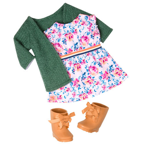 Vietä aikaa suloisessa puutarhassa, jossa on salvia, sukupolven 46 cm nukke. Hänellä on tummanruskeita silmiä, jotka ovat avoimia ja lähellä, ja hänen pitkät vaaleat hiuksensa on hauska harjata ja tyyliä! Avaa Sagen olkilaukku ja aloita kauniiden kukien kasvattaminen. Istuta kukkasiemenet kahdesta puskista käden lapiolla ja katso niiden kukkivan kauniiksi väreiksi! Tee kimppuista ylimääräistä kauniita karsintatyökalulla ja kääri ne antamaan parhaille ystävillesi! Sage voi kiertää kätensä ja jalkansa työskennellessään puutarhassaan, ja hän voi helposti muuttua muiksi asuiksi hauskemmiksi aktiviteetteiksi. Hän saapuu söpölle kukkapukulle, jossa on pitkä neuletakki ja super trendikkäitä saappaita. Hänen mekossaan on myös helppo avoin sulkeminen nopeasti laittaa ja poistaa, joten Sage voi kukoistaa uudessa ulkonäössä joka päivä! Aiheeseen liittyviä tuotteita leikkimaailmalle! Valittuja on niin paljon hienoja sukupolvien nukkeja, lisävarusteita ja asusteita! Voit luoda oman mielikuvitusmaailman ja pelata heti talostasi ja kodistasi!