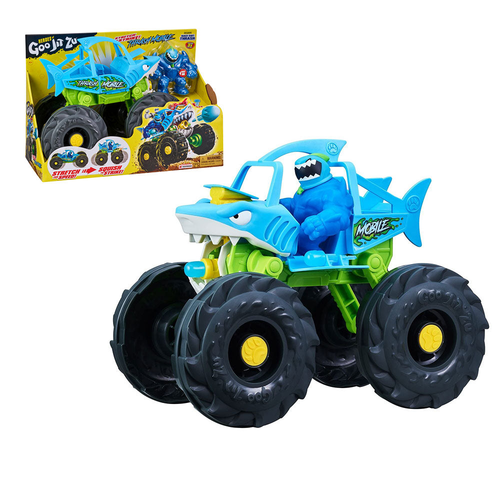 Valmistaudu thrash ja hänen fantastisen "Stretch and Strike" -hotellinsa kanssa, joka on valmistautunut toimintaan! Siinä on kaksi uskomatonta tilaa, ja se on muodostunut kuin hai! Pyöritä pyörät "nopeustilassa" alas levittääksesi pyörät ulos ja mene pitkin. Vedä "Strike Mode" -tapahtumassa alusta aloittamaan hyökkäys ja palo -ohjukset hain leuista. Tässä Goo Jit Zu -taistelukoneessa on vihollisia, jotka värisevät Gooey -saappaissaan "Monster Truck" -sovelluksella ja asenteellaan! Ainutlaatuinen kilpailupuku -hahmo tulee thrash -matkapuhelimeen. Laita hänet pyörän taakse ja tee joitain kiistoja vaurioita! Silti, niin uskomattoman joustava kuin koskaan, Thrash pystyy venyttämään jopa kolme kertaa! Katso sitten, kun hän palaa alkuperäisiin mittoihinsa. Goo Jit Zu "Stretch and Strike" Thrash Mobile sisältää kantoraketin ja kolme ohjuksia, jotka istuvat ovissa.