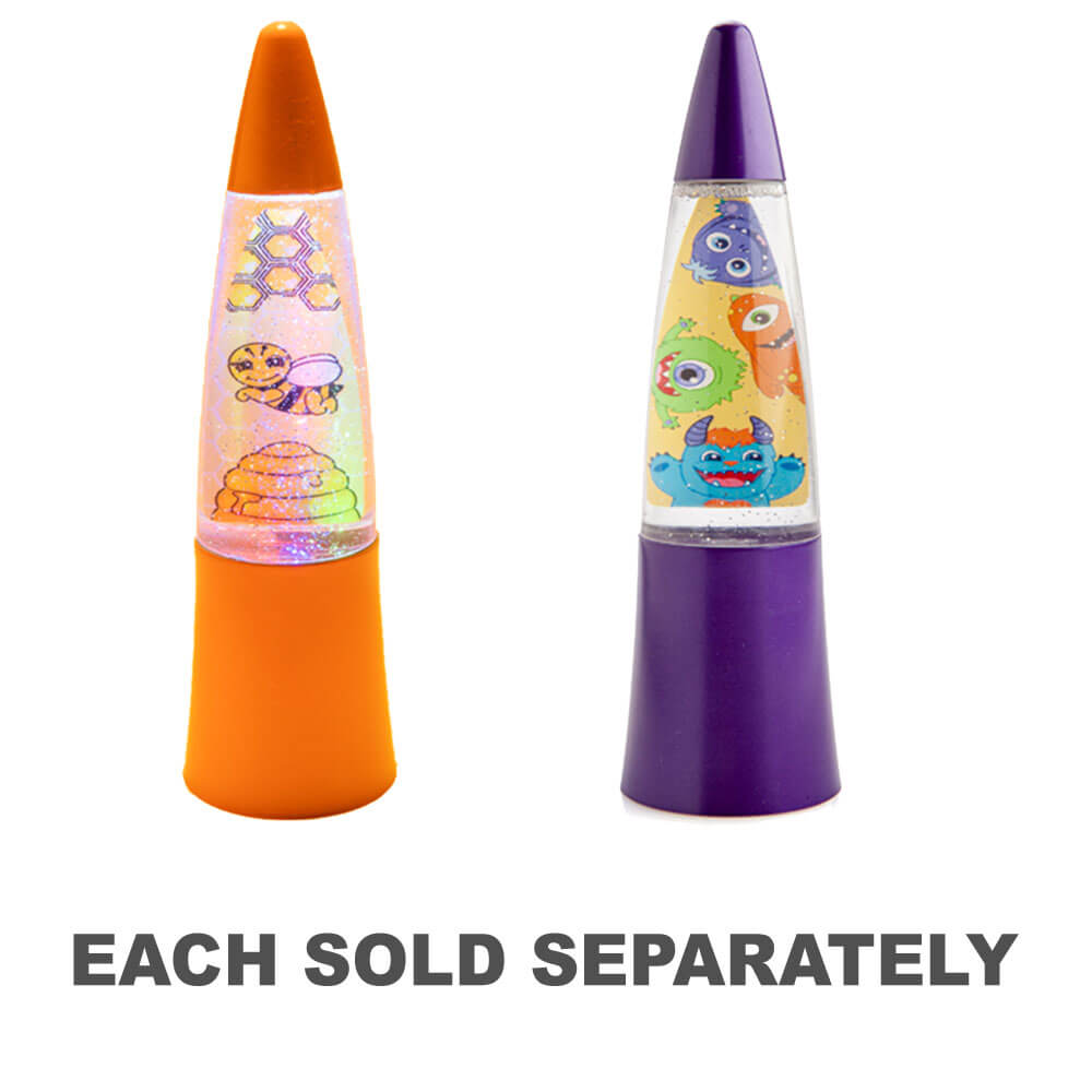 Mini Motion Lamp, jossa värejä vaihtelevat LEDit, aktivoituna ravistamalla täynnä kimaltelua ja siinä on Jolly Joybee-maskotimme sammuu automaattisesti 2,5 minuutin kuluttua