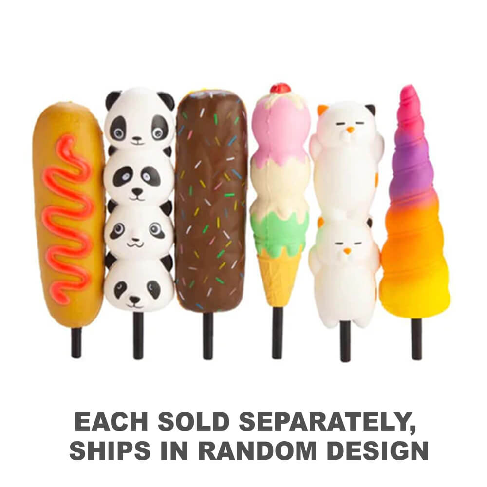 Näissä Smooshos -kynissä on saatavana kuusi erilaista kirkkaata mallia! Jäätelökartio, munkki, hot dog, panda, kissa ja sateenkaari. Kynän runko on squishable -ruoka tai hahmo, sillä välin sisällä on todellinen musta mustekynä, jota voit käyttää kaikkiin muistiinpanoihin tai kirjeen kirjoittamiseen!