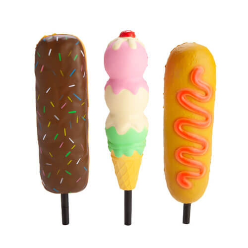 Kynän hauskat osat on valmistettu kurjaisesta vaahtomaisesta materiaalista, joka puristaa ja pomppii takaisin alkuperäiseen muotoonsa. Kynän pehmeä runko on mukava kädessäsi ja löydät omituisen addiktoivaksi jäätelökartion tai hot dog -sovelluksen puristamiseen pienimpaan mahdolliseen tilaan ja katsomaan, että se kasvaa takaisin lähtökokoon!