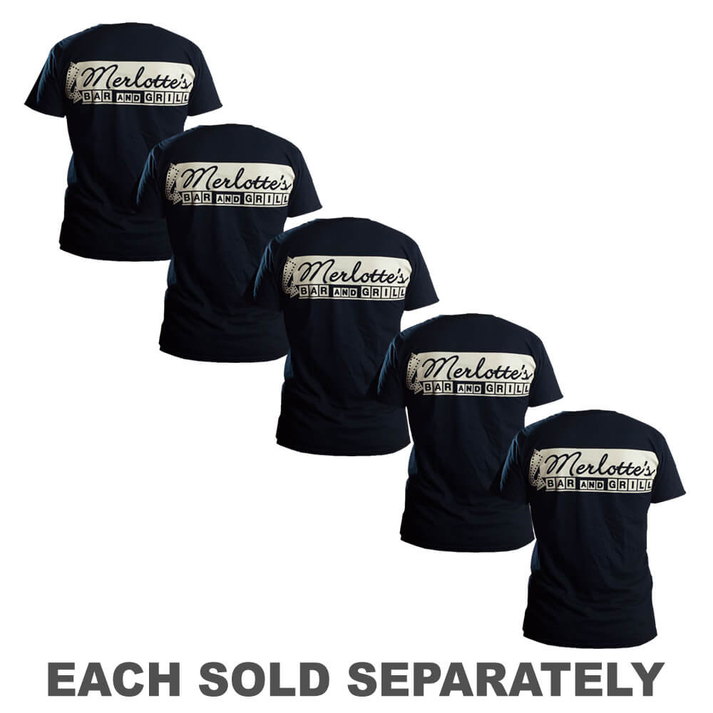 Tässä t-paita sisältää Merlotten baarisuunnittelun TV-sarjasta True Blood.