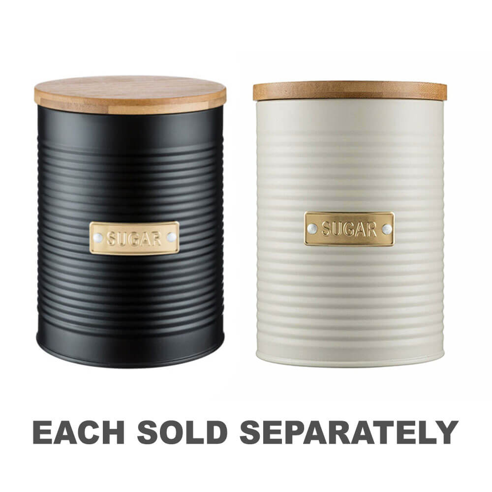 Vahvan ja saumattoman rakenteen avulla tämä sokerin kanisteri on valmistettu kestävästä teräksestä, jossa on trendikkäitä bambu-kansi, jossa on ilmatiivis tiiviste varmistaaksesi, että sisältö pysyy tuoreena pidempään. Hienostuneessa mustassa, joka sopii mihin tahansa keittiöön, voit tehdä kodistasi koordinoitua ja muodikasta kerralla taifuunin kanssa.